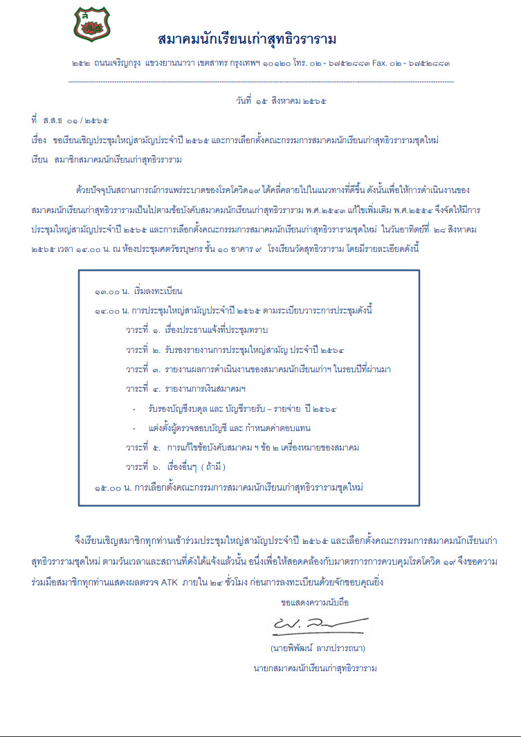 ขอเรียนเชิญประชุมใหญ่สามัญประจำปี ๒๕๖๕